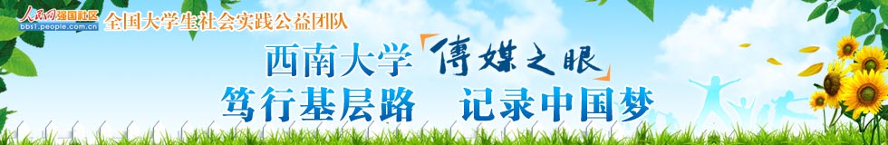 接下來他們將分散調(diào)研,通過拍攝和征集100組生動、鮮活、感人的“老百姓的中國夢”圖片,傾聽、記錄、分析老百姓對“中國夢”的理解,以及對地方發(fā)展的建議和對城市建設的意見...詳情>>> 7月4日上午,熱情盛夏,流光溢彩。歇馬鎮(zhèn)碚青路中心廣場上人頭攢動、歌聲飛揚、掌聲不斷、熱鬧非凡。西南大學“傳媒之眼”服務隊的志愿者同學在這里舉行“篤行基層路,記錄中國夢”為主題的文藝匯演。