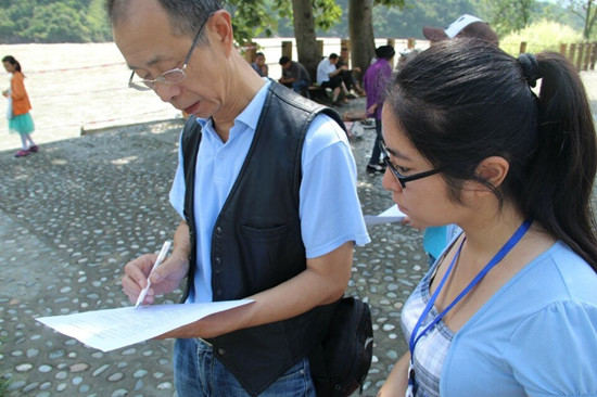 “綠色新生態(tài)”團(tuán)隊(duì)的成員來(lái)自四川農(nóng)業(yè)大學(xué)資源與環(huán)境學(xué)院,此次實(shí)踐的主題是“宣環(huán)保足探石棉縣,揚(yáng)生態(tài)共筑中國(guó)夢(mèng)”。隊(duì)員們前往災(zāi)后重建縣城——雅安市石棉縣開(kāi)始為期8天的征程:走訪石棉縣下屬各鄉(xiāng)鎮(zhèn),發(fā)放調(diào)查問(wèn)卷,采訪相關(guān)政府部門,參觀革命紀(jì)念館等。雖然實(shí)踐進(jìn)展的不是一帆風(fēng)順,但隊(duì)員們?nèi)詧?jiān)持不懈,不斷反思自我!敖裉斓膶(shí)踐帶給我最多的就是震撼和感動(dòng),在分發(fā)便利貼時(shí)遇到了很多困難,但克服這些困難之后會(huì)有一種深深的滿足感。飽含濃郁的紅色文化氛圍的安順是我們小隊(duì)宣傳‘中國(guó)夢(mèng)’的絕佳之地,我們還要更加努力!标(duì)員胡瀚文在中國(guó)工農(nóng)紅軍強(qiáng)渡大渡河紀(jì)念館做環(huán)保宣傳時(shí)這樣告訴記者。另一位隊(duì)員郭瑀說(shuō):“能深入鄉(xiāng)村進(jìn)行面對(duì)面的了解對(duì)我來(lái)說(shuō)是一個(gè)全新的經(jīng)歷,很新鮮也很有意義。雖然實(shí)踐的時(shí)候很累,但還是有一股力量支撐著自己堅(jiān)持下去,我們的成員們都很棒,相信我們能取得好的成果!