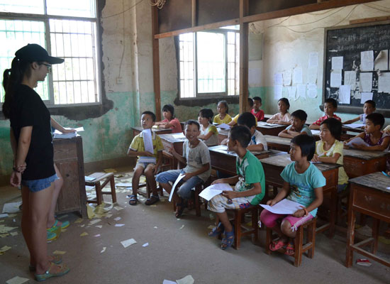 沒有多媒體,沒有地圖冊,沒有教科書,8月3日,北京林業大學岳蹊隊來到江西南昌市新建縣松湖鎮港西村開展暑期社會實踐,用兩支粉筆,為港西小學的孩子們描繪著外面的世界。