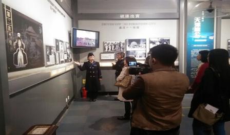 人民網“尋找歷史記憶 緬懷抗戰英烈”采訪團成員在長春偽滿皇宮博物院采訪。
