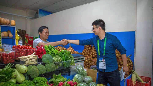 一走進農貿市場,很多商戶們都主動跟我們的問好,這當然是因為兩名大廚是“采購大戶”,都希望能多照顧下自家的生意。各樣蔬菜、各式水果、各種主食,兩位大廚都要精心挑選、仔細詢問比劃,整個采購過程緊湊而細致。