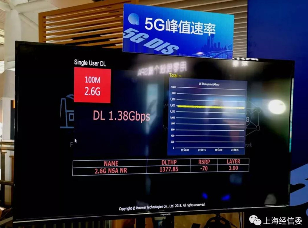 2月18日,上海虹橋火車站啟動5G網(wǎng)絡(luò)建設(shè),計劃2019年年內(nèi)完成5G網(wǎng)絡(luò)深度覆蓋,將成為首個采用5G室內(nèi)數(shù)字系統(tǒng)建設(shè)的火車站。圖為5G峰值速率展示。(上海經(jīng)信委)