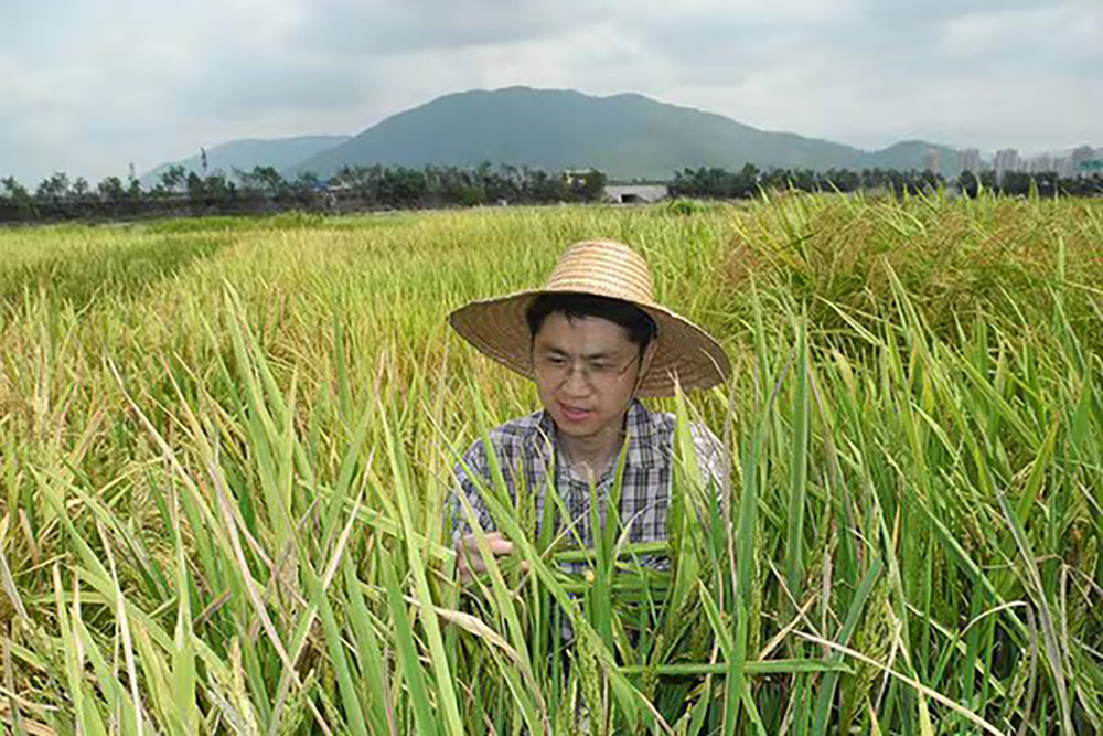 王克劍在田間觀察雜交稻生長情況。受訪者供圖